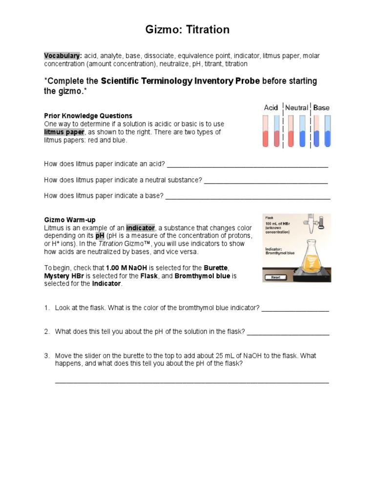 Acid Base Titration Lab Report Sheet from sxl.hadiyatransformations.pw Write your procedure for the first lab, step by step. You will have a test on lesson 145 on this unit. Subtract off 5 points for any missing part. Record your score out of 31. Study your notes and practice the various types of problems learned.